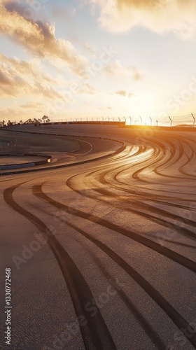 Naklejka premium A large, empty field with a few clouds in the sky. The sun is setting and the...