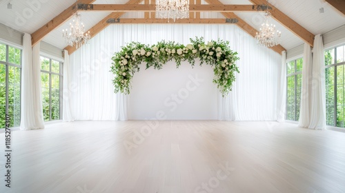 © Sangsung, Fototapeta premium A large, empty room with a white wall and a white archway