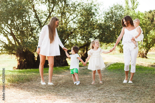 Fototapeta premium A large family with homosexual parents. Two mothers.