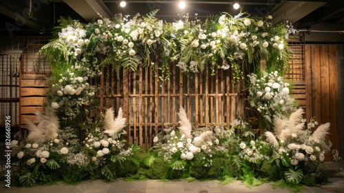 © Sasikharn, Naklejka premium A large floral arrangement with white flowers and green foliage