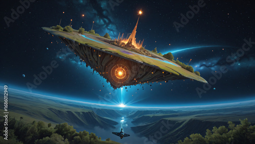 Obraz premium A large forest-patterned UFO in space