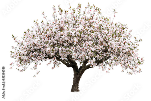 © Wawan, Obraz premium A large, full-blooming cherry blossom tree with white flowers against a white transparent background.