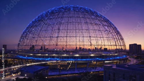 Obraz premium A large glass dome with a blue light on top, suitable for use in...