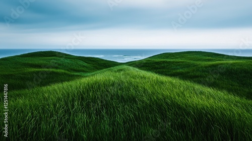 © mila103, Fototapeta premium A large, grassy hillside with a body of water in the background