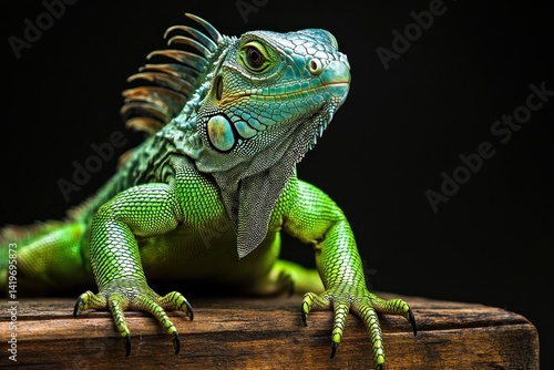 © Musa, Fototapeta premium A large green iguana showing its body in close up detail