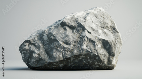 Naklejka premium A large grey rock sits on a grey background all by itself. isolated on a...