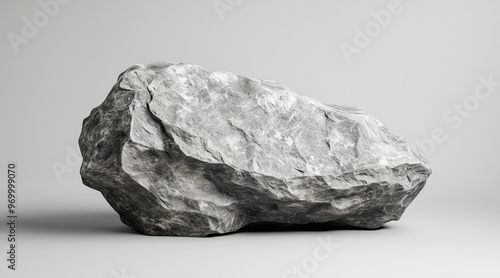 Naklejka premium A large grey rock sits on a grey background all by itself. isolated on a...