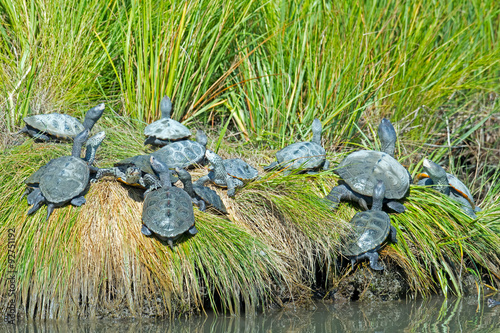 © Brian E Kushner, Obraz premium A large group of Diamondback Terrapin's on the Shoreline