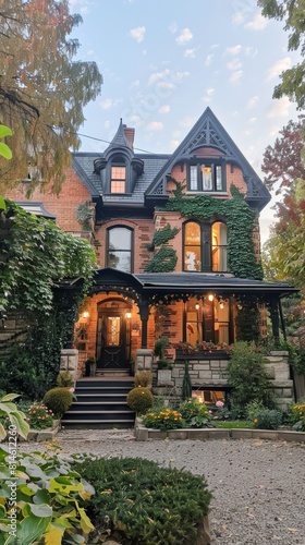 © Napat.T, Fototapeta premium A large house with ivy growing on the side
