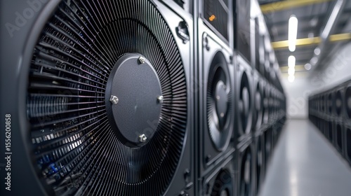 © Khan, Fototapeta premium A large, industrial data center with rows of servers and cooling equipment.