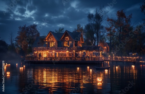 Fototapeta premium A large manor decorated for Halloween.