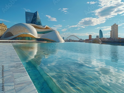 © Anna Baranova, Naklejka premium A large modern city building in the style of monumental architecture