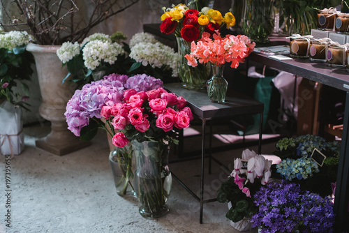 © Корнеевец-Выдренкова, Fototapeta premium A large number of different flowers in the flower market