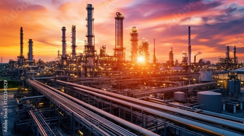© Sawat, Fototapeta premium A large oil refinery processing crude oil with advanced energy efficiency systems