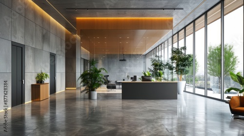 © hanafi 99d, Obraz premium A large open office space with a lot of natural light and plants