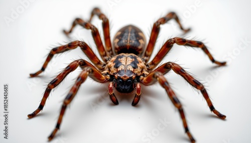© MakeitEasy, Fototapeta premium A large orb weaver spider with distinctly patterned legs in a close up view.