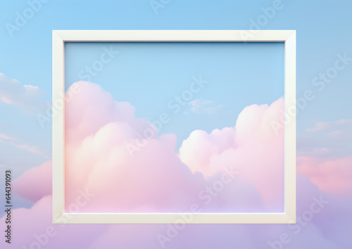 © Popovo, Naklejka premium A large picture frame or white frame with copy space of soothing iridescent pastel blue and pink colors, clouds and pleasant irregular shapes. Generative AI.