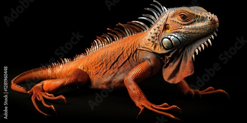 © Natalia, Obraz premium A large, red iguana with spiky scales and horns on its head.