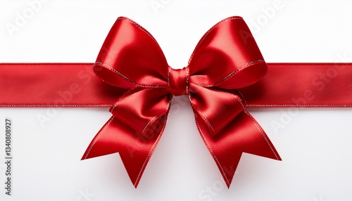 Fototapeta premium a large red ribbon bow in the centre of a straight piece of ribbon to be used...