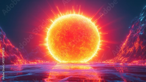© Charoen, Fototapeta premium A large red sun is in the center of a blue and red background