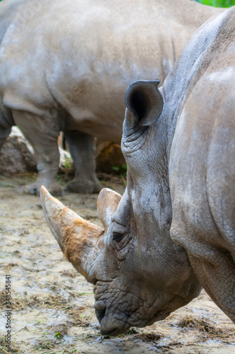Obraz premium A large rhinoceros stands sideways