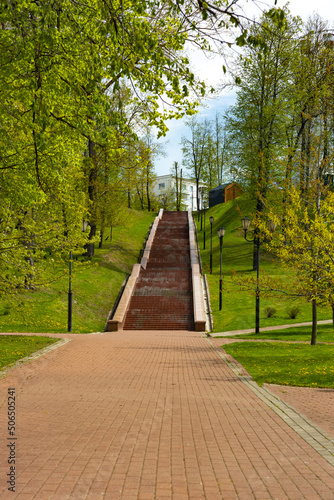 © Richir, Obraz premium A large staircase in the park for climbing the hill