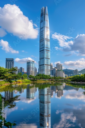 © Alexander Chaykin, Fototapeta premium A large structure situated on calm water, ideal for landscape or architecture compositions