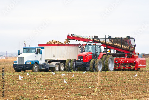 © rCarner, Fototapeta premium A large tractor and semi-truck loading beets