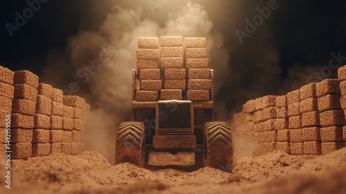 © Nikolai, Obraz premium A large tractor carrying a load of bricks.
