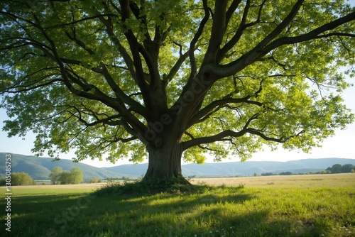 © Zeynep, Obraz premium A Large Tree in the Middle of a Grassy Field - Generative AI