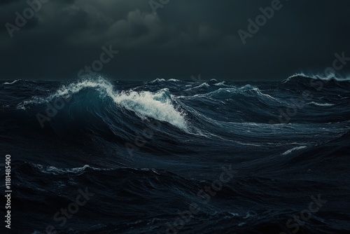 © Alexei, Fototapeta premium A large wave is breaking dramatically in the ocean at night