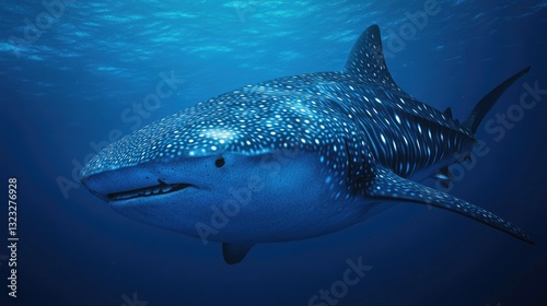© Gambar Upi, Naklejka premium A Large Whale Shark Swimming Gracefully Through Deep Ocean Waters