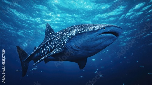 © Gambar Upi, Fototapeta premium A large whale shark swims serenely through the deep blue ocean water