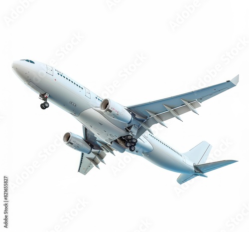 © Thanyaporn, Fototapeta premium A large white airplane is flying through the sky