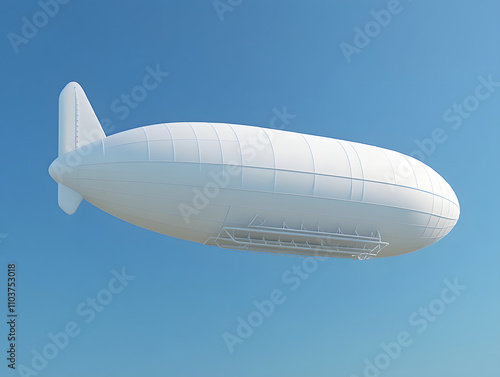 © DeepView, Fototapeta premium A large, white airship floating in a clear blue sky.