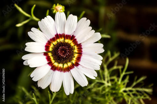 © Marieke, Obraz premium A large white Blanket flower, Gaillardia, with a maroon and yellow inner ring