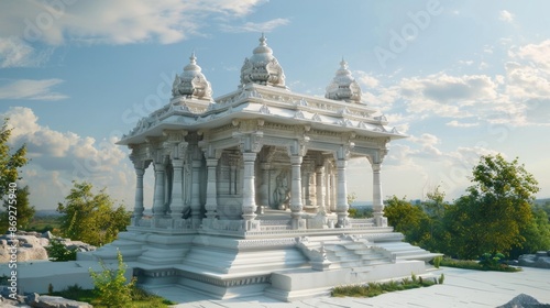Fototapeta premium A large white building with a clock on top, suitable for use in cityscape or architecture scenes