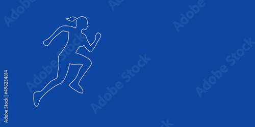 Fototapeta premium A large white outline running woman symbol on the left. Designed as thin white lines. Vector illustration on blue background