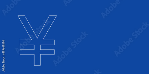Obraz premium A large white outline yuan symbol on the left. Designed as thin white lines. Vector illustration on blue background