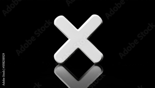 © Crazy Dark Queen, Obraz premium A large white X shape with a smooth surface standing against a black background with a reflective surface
