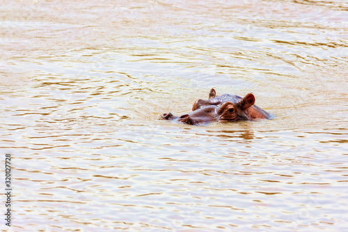 Fototapeta premium A large wild hippopotamus is floating on the river. Kenya Nation