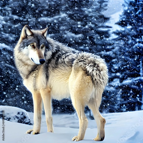 © LaVonna, Fototapeta premium A Large Wolf in the Mountains and Snow