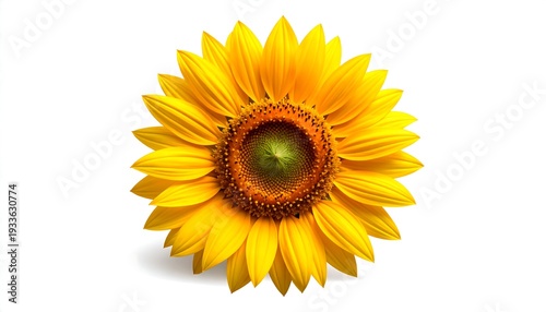 © Tun, Fototapeta premium A large yellow sunflower on a white background