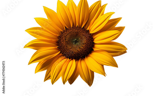 Fototapeta premium A large yellow sunflower with a vibrant green center stands tall against a...