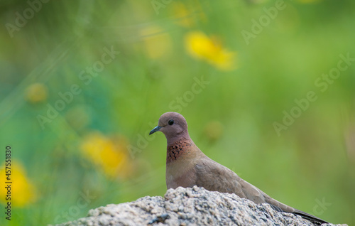 Obraz premium A laughing dove pigeon with beautiful background in the forest