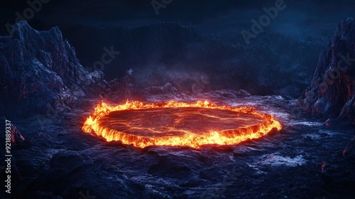 Naklejka premium A lava-infused podium glowing in the heart of a volcanic landscape, with hot...