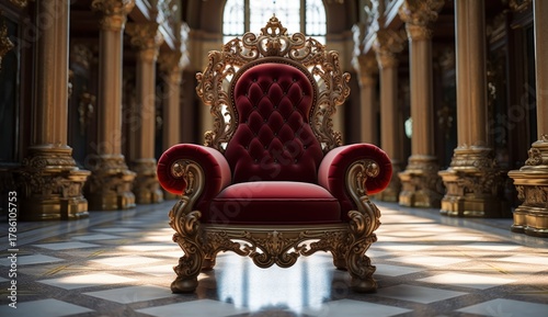 Obraz premium A lavish, ornate throne in a grand architectural space, showcasing rich...