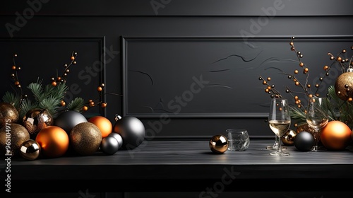 Naklejka premium A lavishly decorated black table in a room, featuring seasonal holiday...