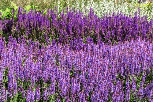 Fototapeta premium A lawn with a flowering sage on a sunny summer day