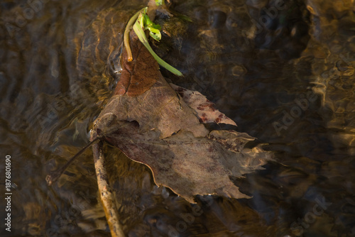 © photosivan62, Obraz premium A leaf submerged in the stream